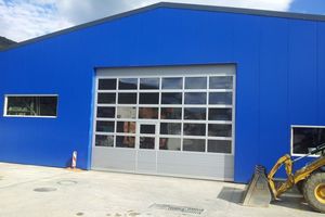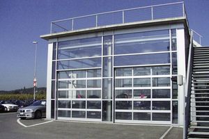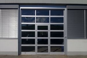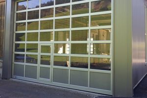 Das Torblatt besteht aus einer Rahmensprossen-Konstruktion, Aluminium eloxiert in diverse Felder eingeteilt. Füllungen 2x2,5mm isoliertes Plexiglas oder geschlossene Füllungen nach Ihren Wünschen.