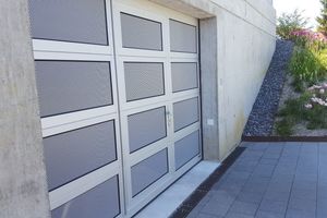Individuelle Designmöglichkeiten, komfortabel, Stahl verzinkt oder Aluminium, Servicetüre. Ausführung Schiebetor ist ansichtsgleich eines Sektionaltores.